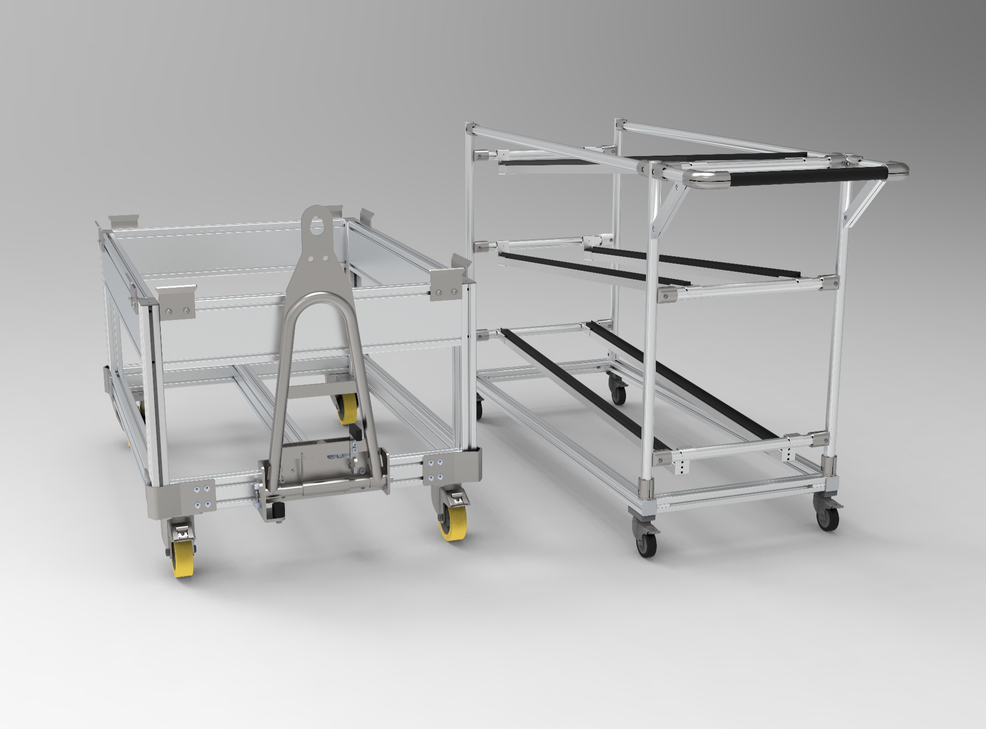 nízké a vyvýšené paletové vozíky, přepravní spádové vozíky, policové vozíky